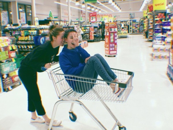 何超蓮坐超市手推車興奮比V字 笑自己太重怕壓壞